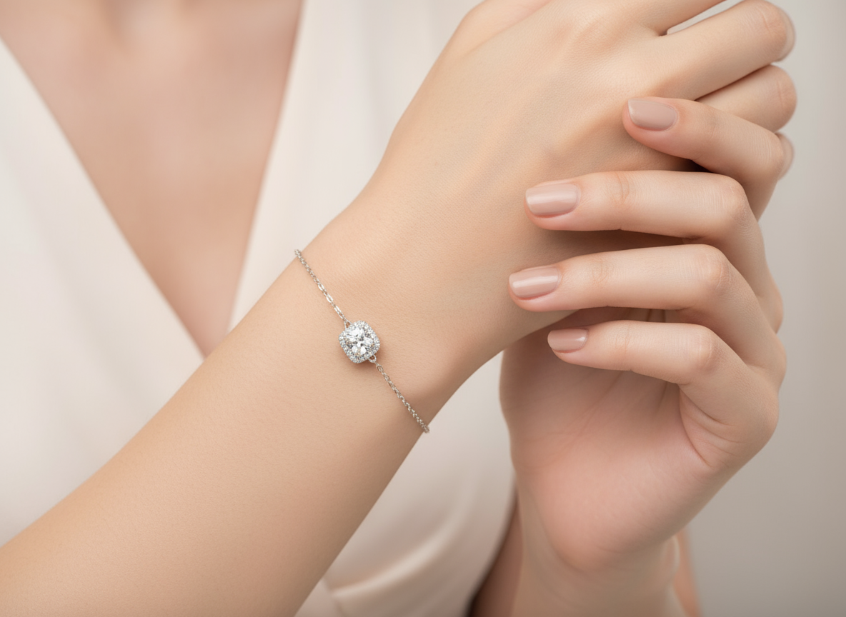 التصميم: سلسلة رفيعة دقيقة متصلة بحجر لامع في المنتصف.