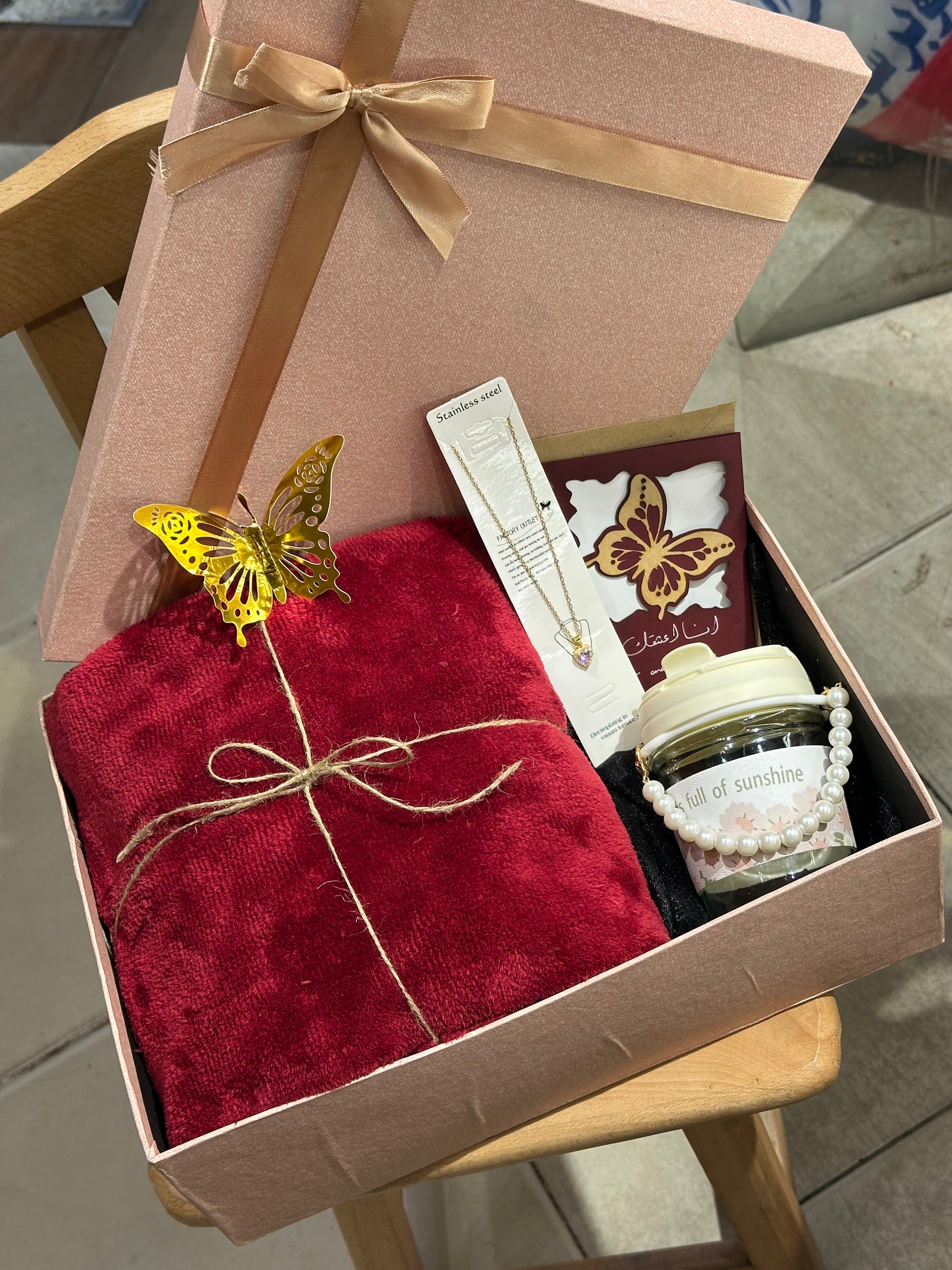 متكون من شال الاحمر فرو متبطن مقاسه 55+160 سم