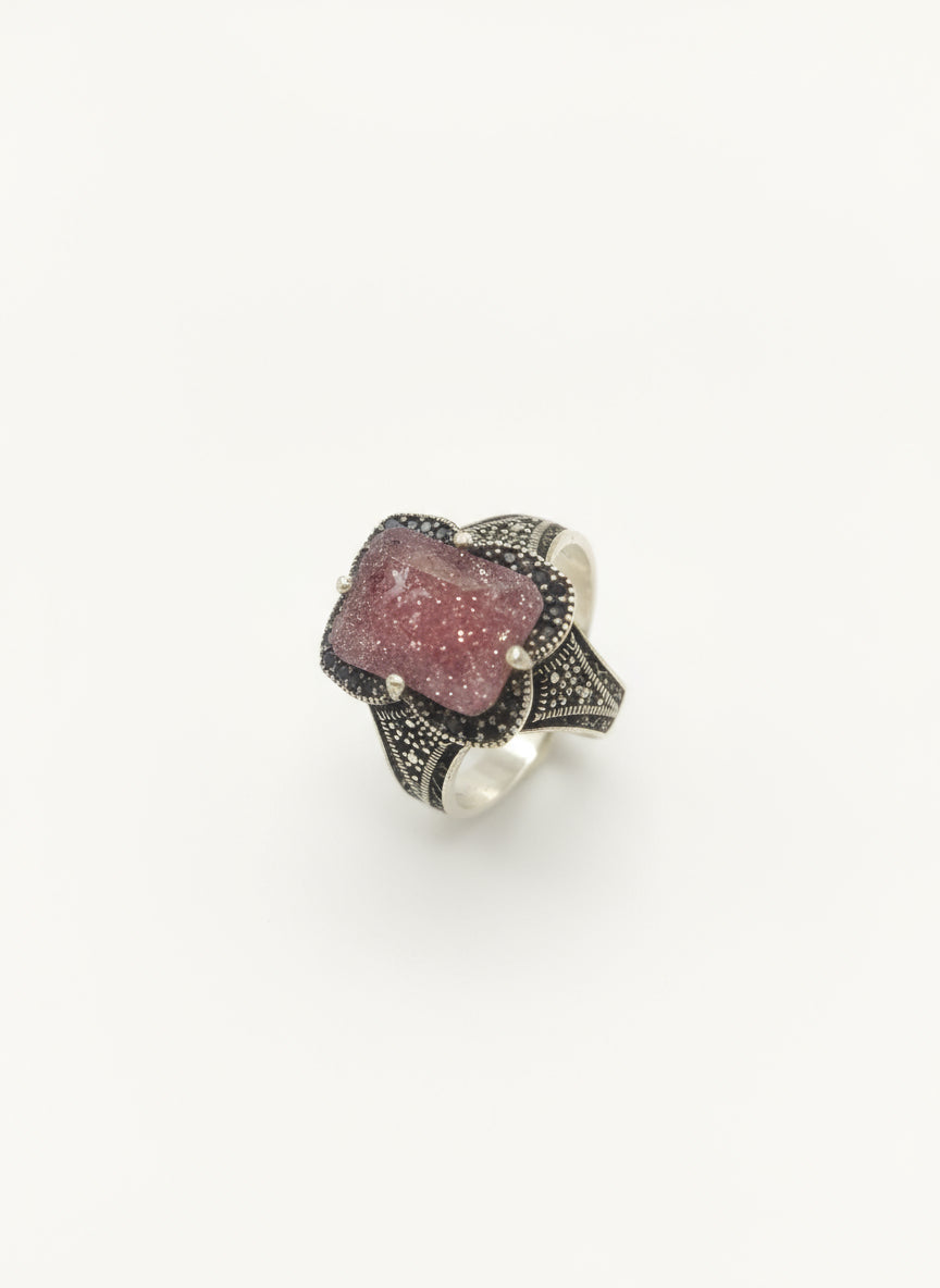 🔹 الخامة:  مصنوعًا من الفضة ، مع زخارف دقيقة ونقوش صغيرة داكنة على الإطار تعطيه مظهرًا عتيقًا (أسلوب الماركيزيت Marcasite الكلاسيكي).