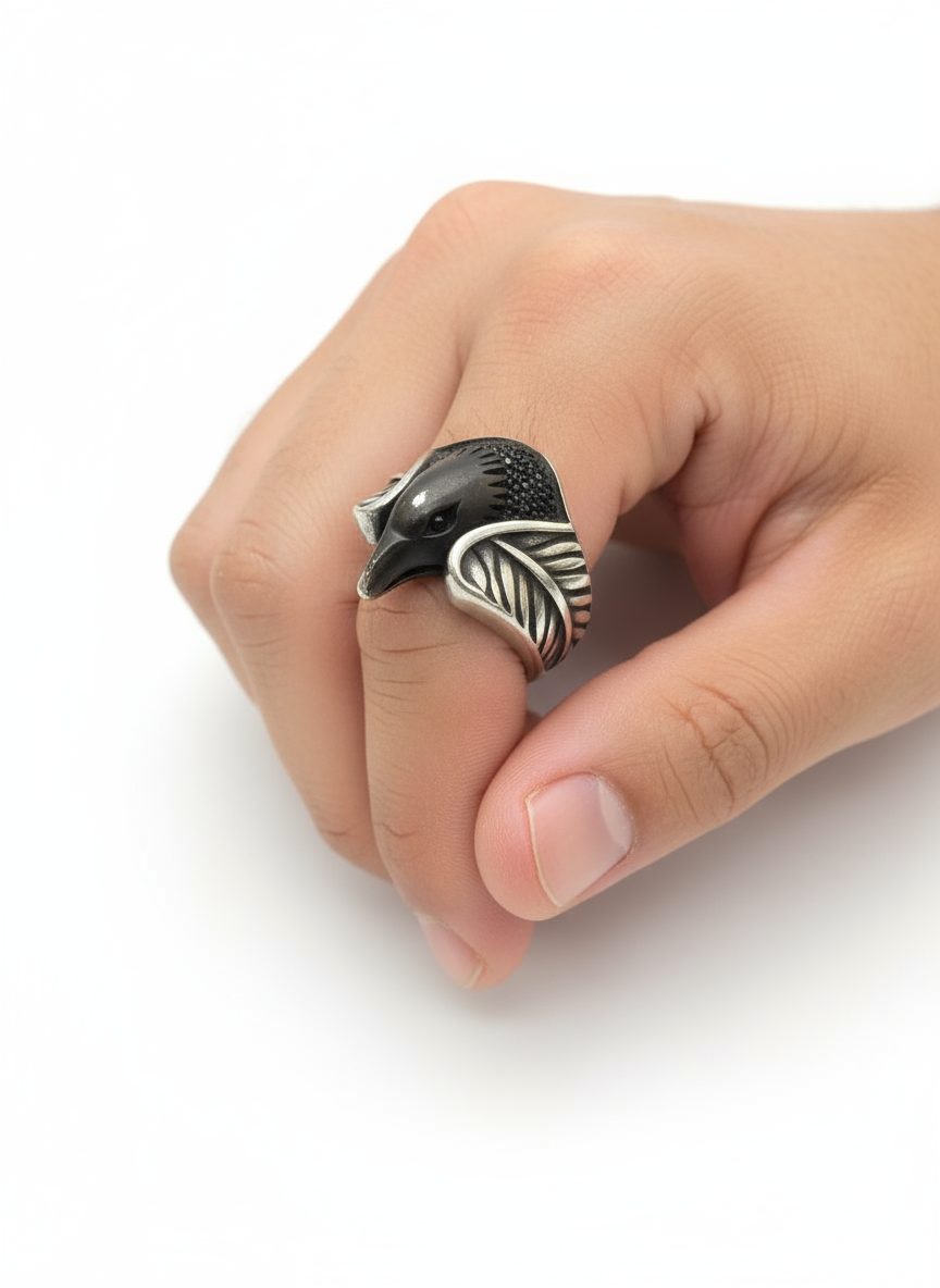 الخاتم الظاهر في الصورة هو خاتم رجالي بتصميم رأس ذئب، وفيما يلي أبرز المعلومات عنه: