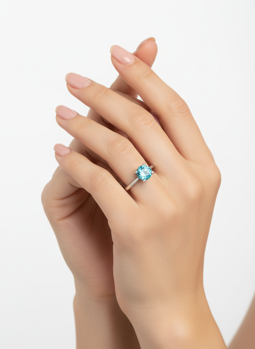 توباز أزرق (Blue Topaz) – يتميّز بصفائه وبريقه العالي.