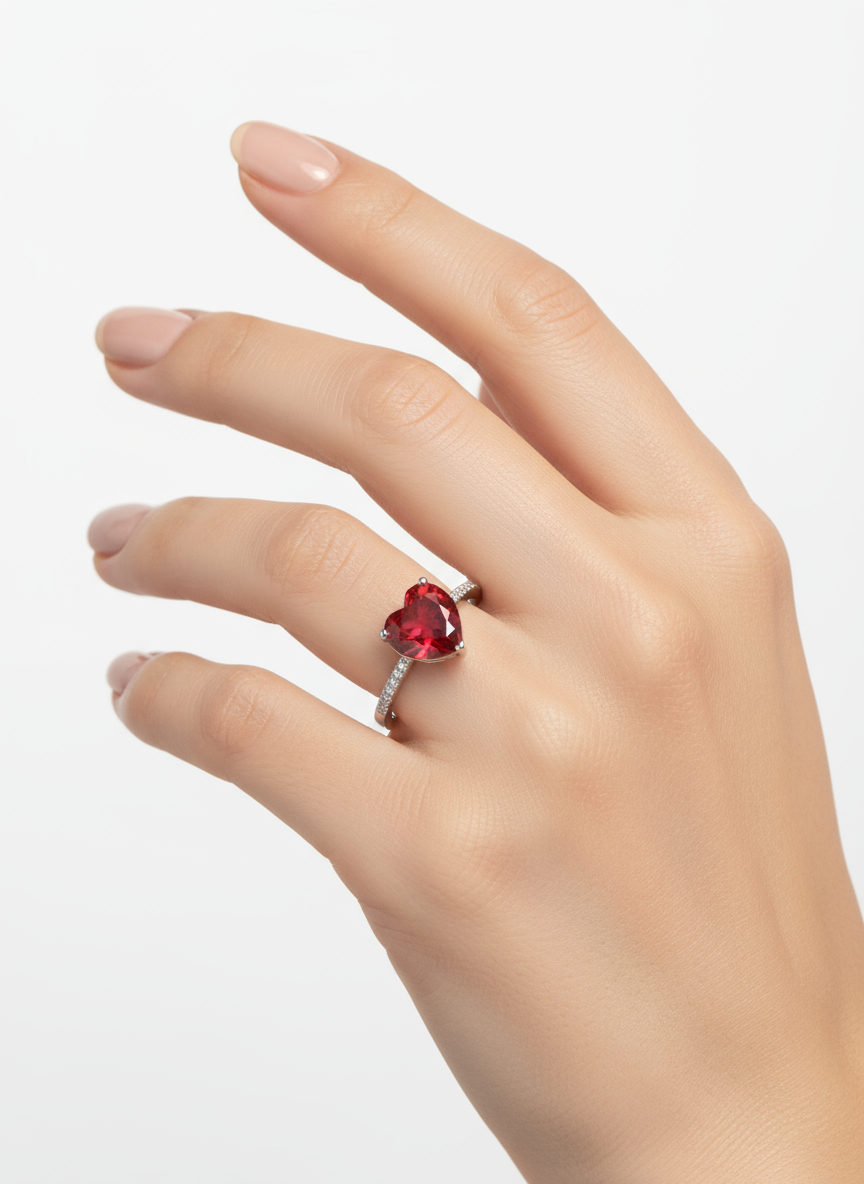 الحجر: زركون أحمر أو كريستال صناعي على شكل قلب