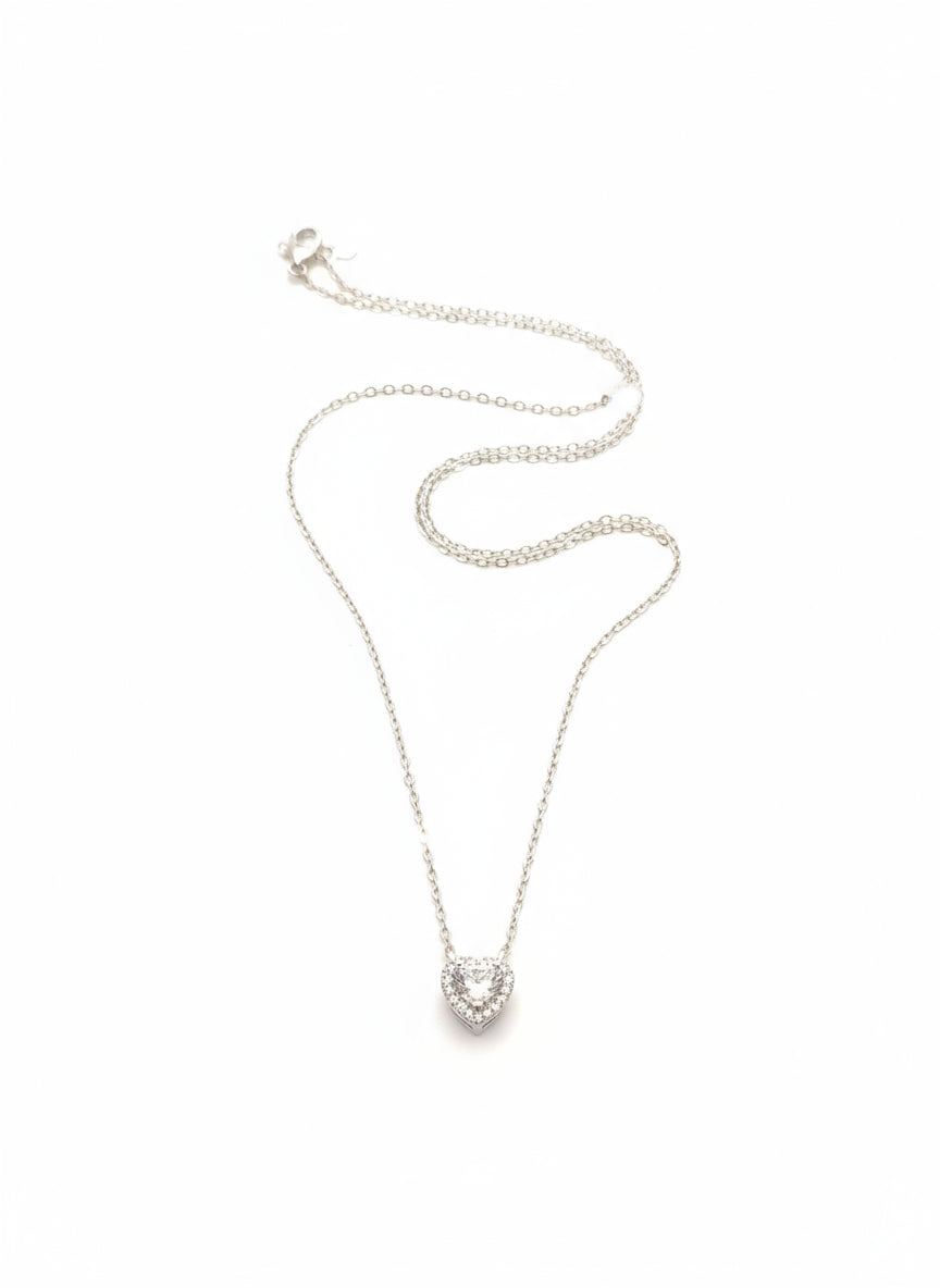 السلسلة في الصورة هي سلسلة نسائية أنيقة بتصميم قلب مرصّع بالأحجار اللامعة.