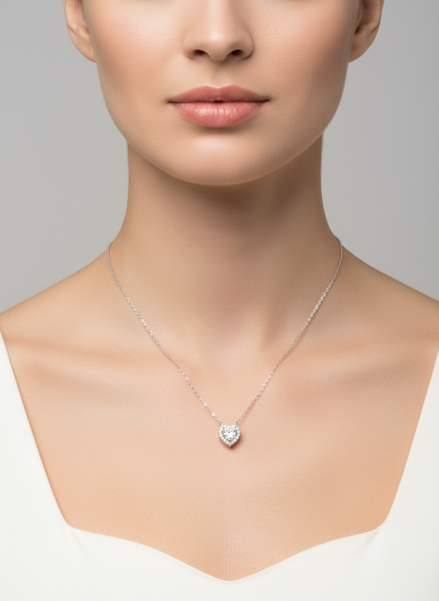 التصميم: قلب صغير في المنتصف مرصّع بفصوص لامعة (تشبه الزركون أو الألماس الصناعي).