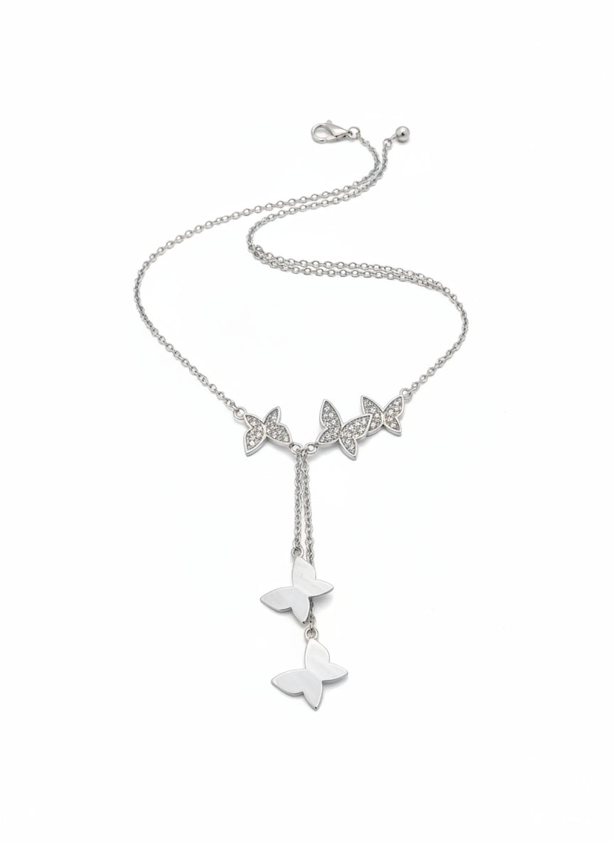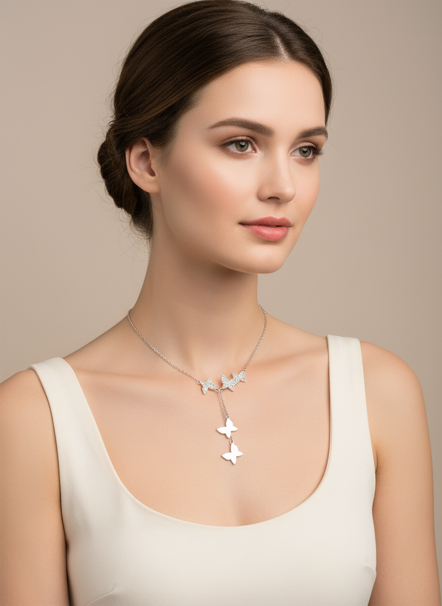 تتدلى من منتصف السلسلة فراشتان صغيرتان تمنحان شكلًا أنثويًا جذابًا.