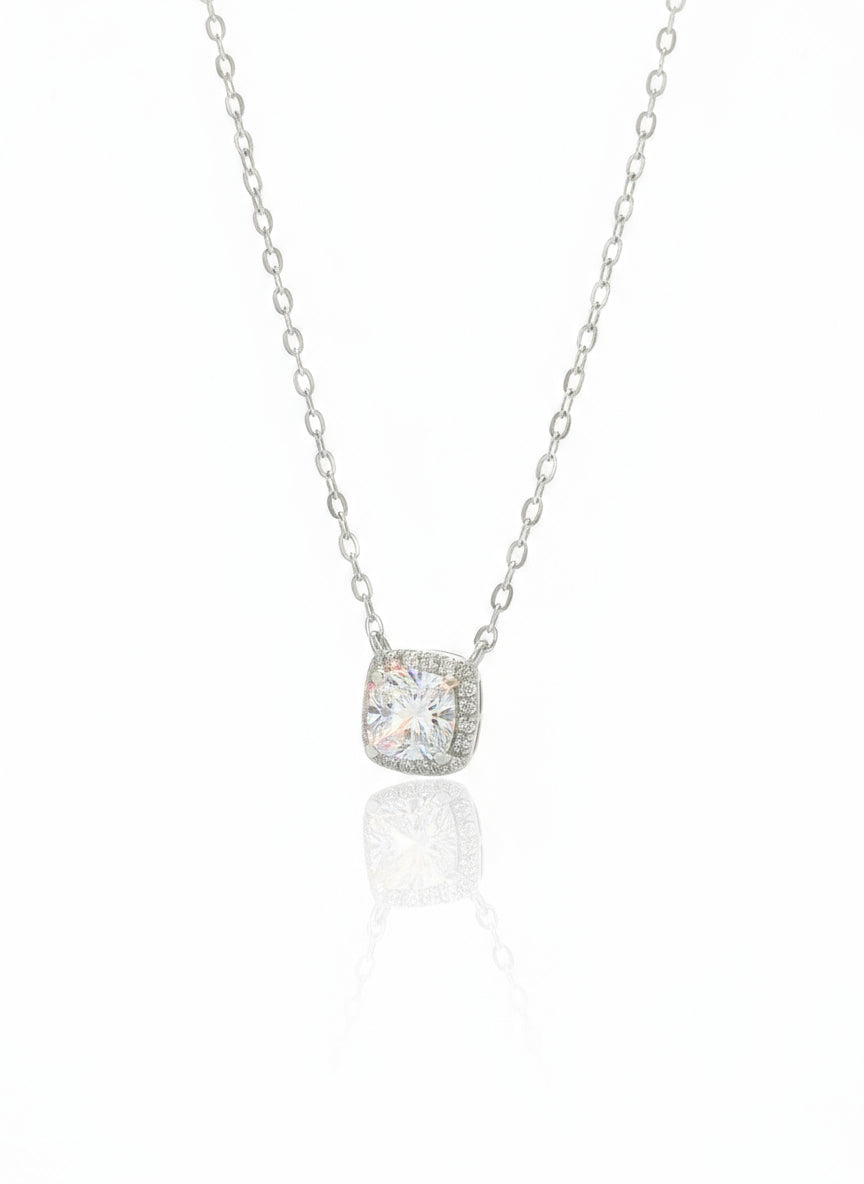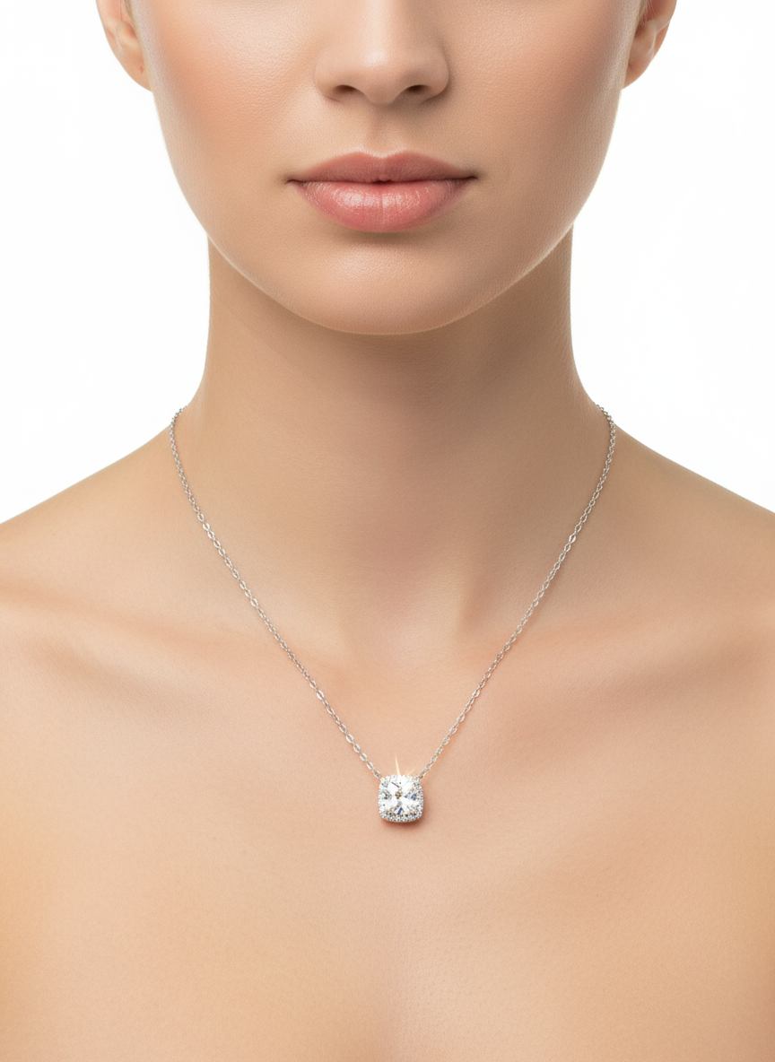 الشكل العام للبندنت (القلادة): تصميم مربع بحواف مستديرة (Cushion Cut Style).