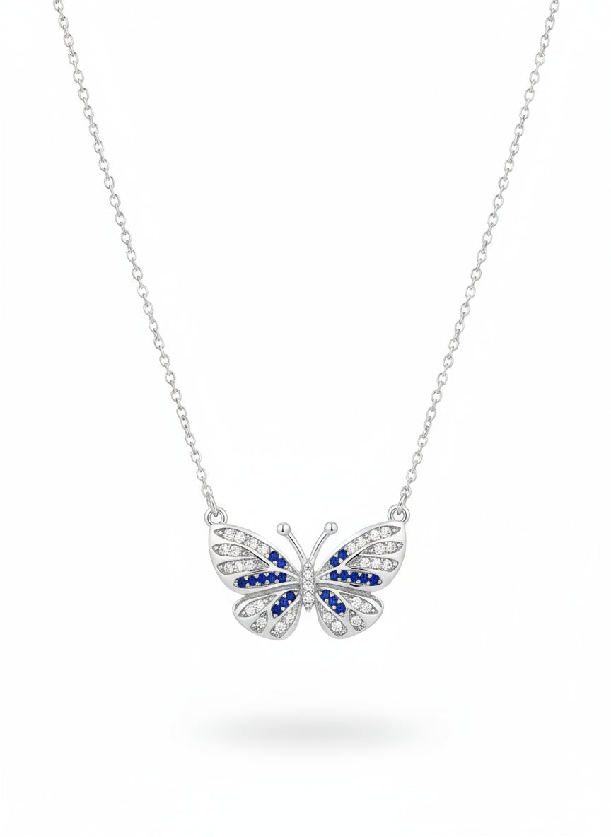 هذه السلسلة الفضة تتميّز بتصميم أنثوي راقٍ على شكل فراشة، تجمع بين الأناقة والبساطة.
