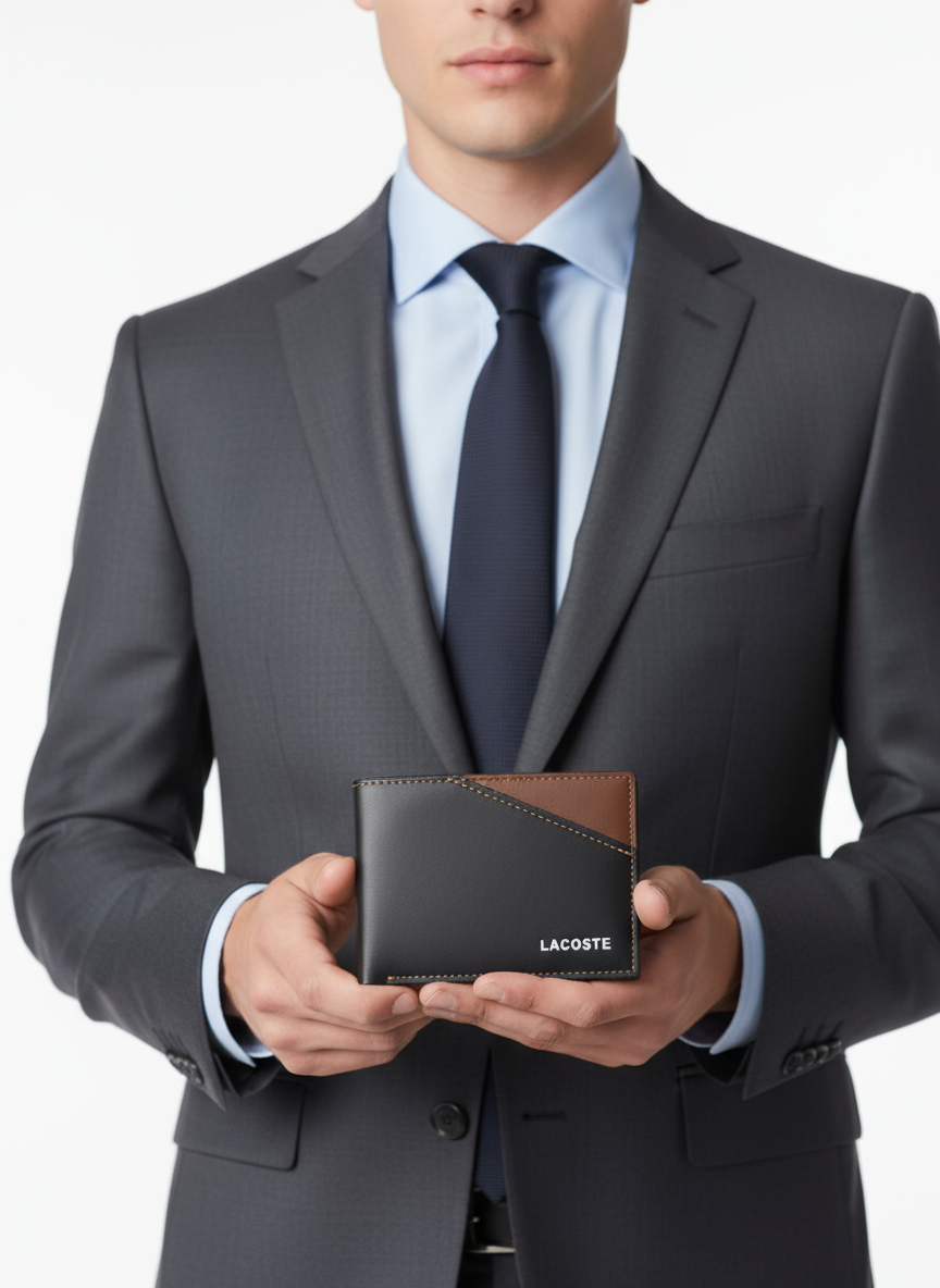 المظهر: تعطي مظهراً أنيقاً وعصرياً يجمع بين الطابع الرياضي الكلاسيكي لـ Lacoste مع لمسة من الترف.