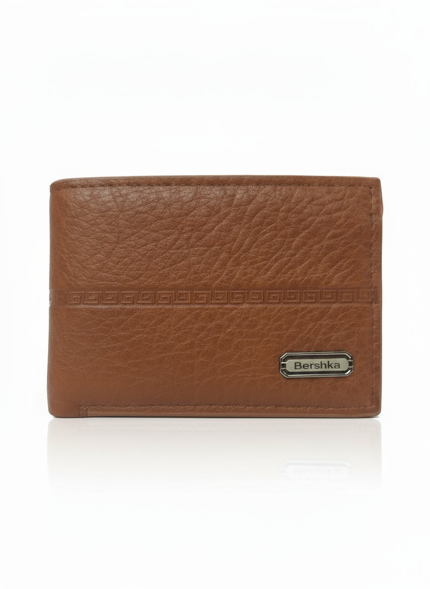 التصميم: بسيط مع نقش زخرفي أفقي وختم معدني صغير يحمل شعار Bershka من الأمام.