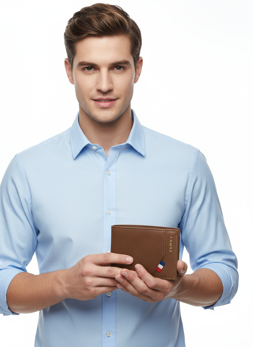 🔹 الاستخدام: مناسبة للرجال، تتسع للنقود الورقية والبطاقات، وغالبًا تحتوي على جيب للعملات المعدنية في الداخل